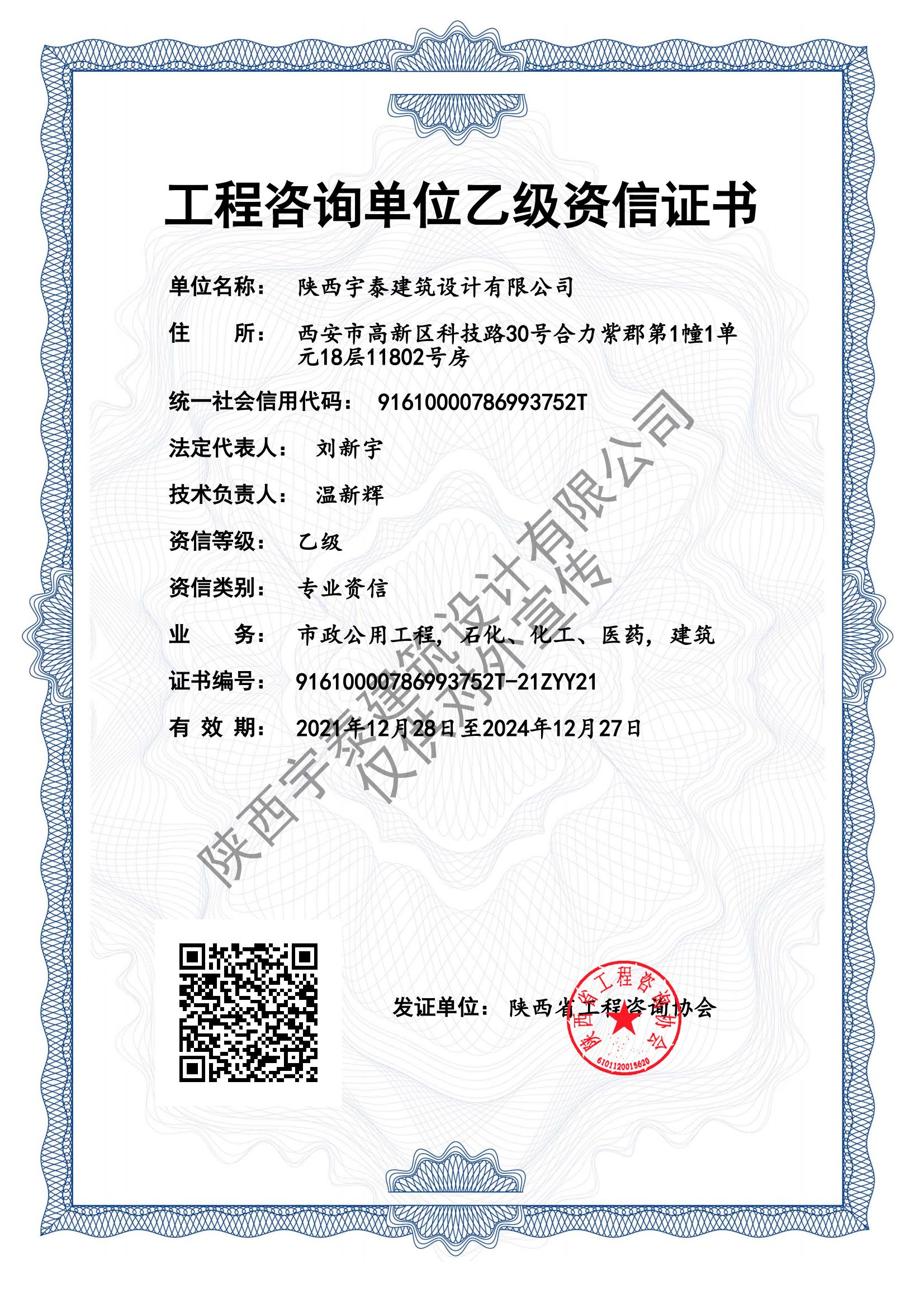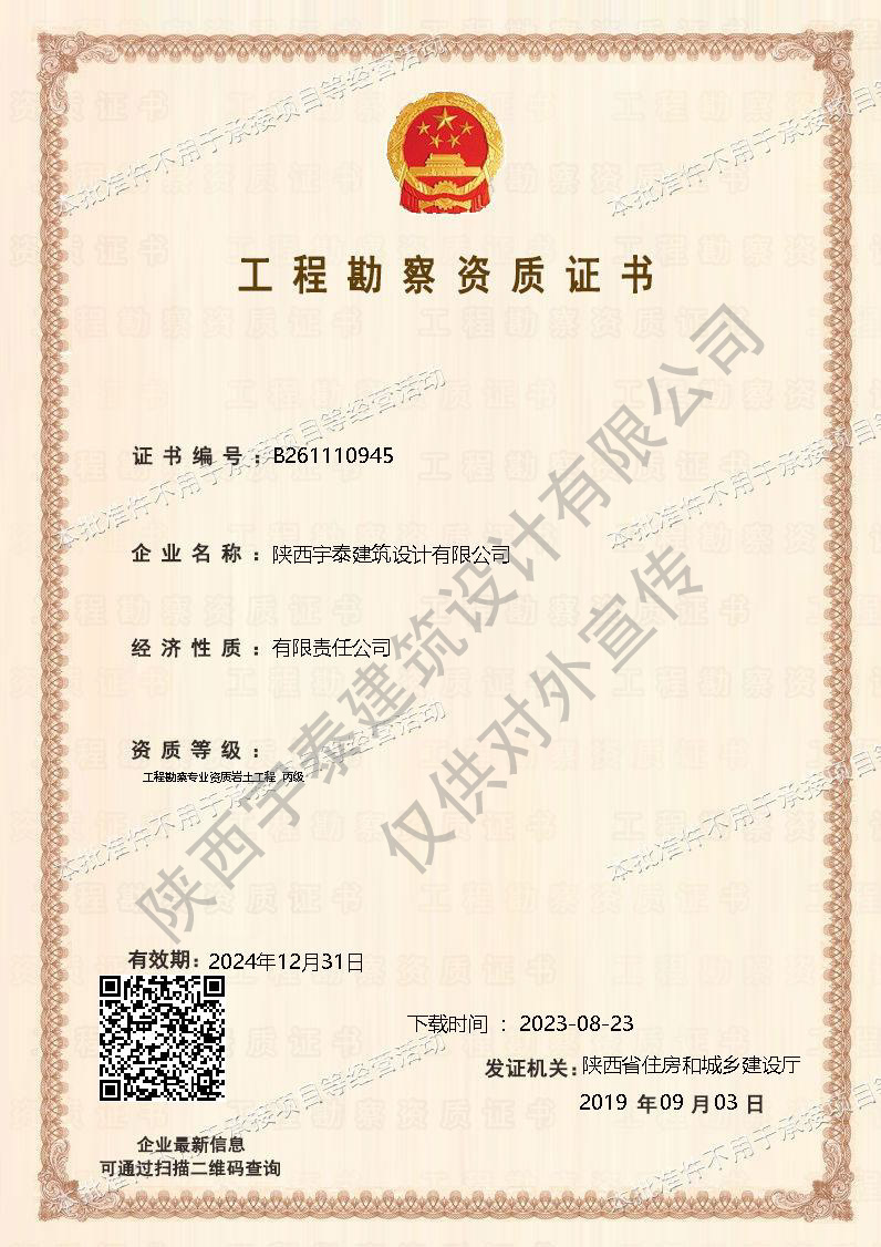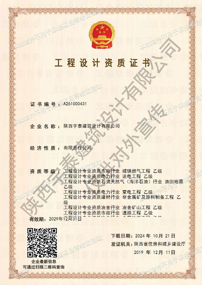 • 熱烈祝賀陜西宇泰建筑設(shè)計(jì)有限公司工程設(shè)計(jì)資..